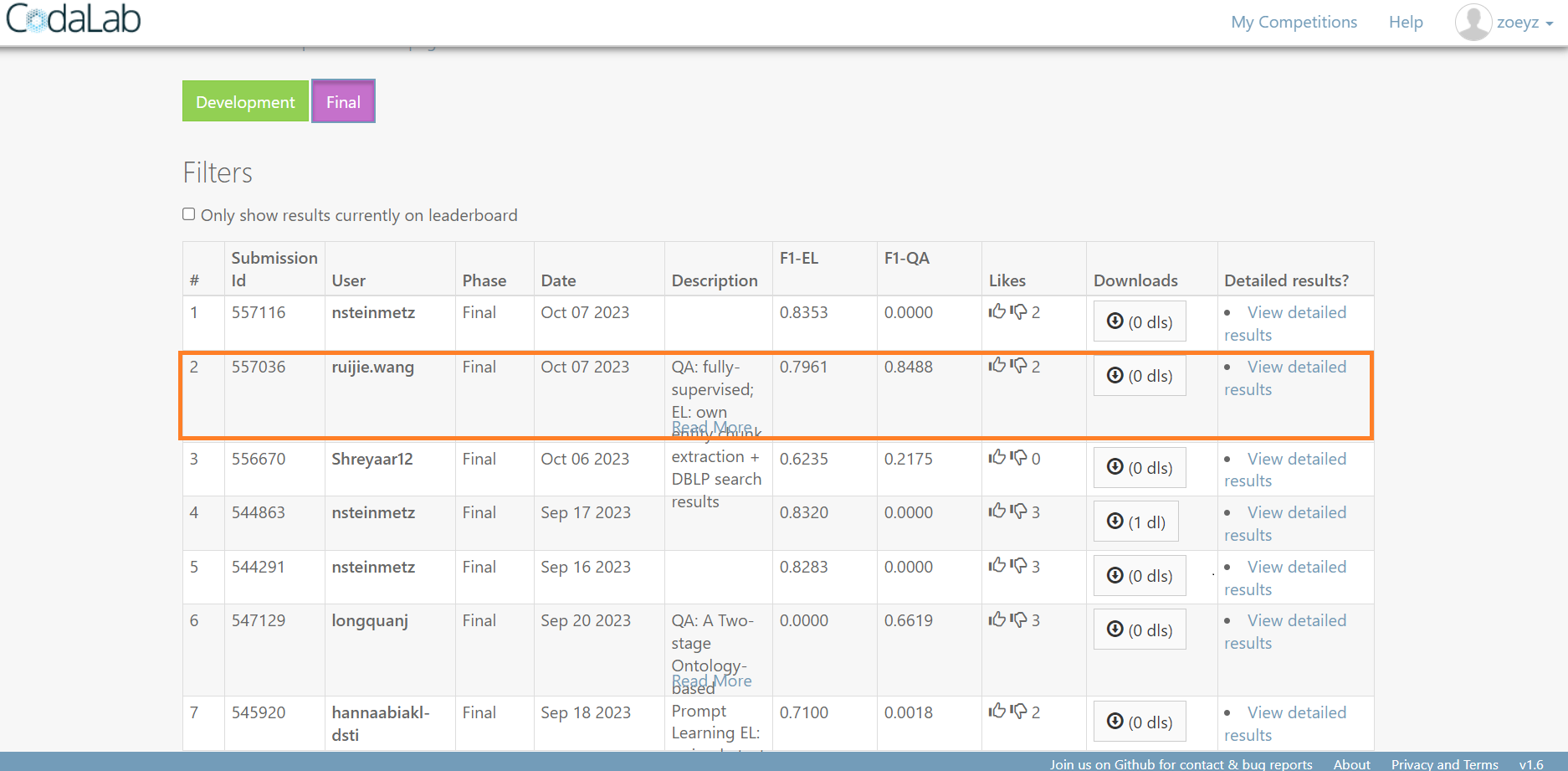 Public submissions on the leaderboard (link: CodaLab — public submissions).